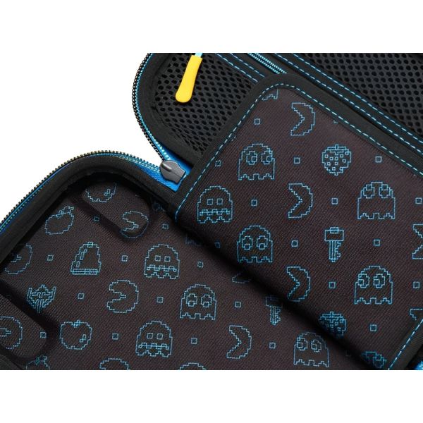 El Estuche Protector PowerA PAC-MAN Retro Arcade para Nintendo Switch (PWA-A-14191) es la combinación perfecta de estilo retro y protección avanzada para tu consola. Con un diseño inspirado en el clásico juego de arcade PAC-MAN, este estuche presenta gráficos vibrantes que evocan la nostalgia de los videojuegos vintage. Compatible con Nintendo Switch, Switch OLED y Switch Lite, su carcasa rígida exterior protege tu consola contra golpes y caídas, mientras que el interior de fieltro suave evita rayaduras. El estuche incluye un compartimento que guarda hasta 9 cartuchos de juego, manteniendo tus títulos organizados y al alcance. Además, tiene un bolsillo de malla con cierre, perfecto para almacenar cables, audífonos y otros accesorios pequeños. Con un cierre de doble cremallera y una cómoda asa de goma, el transporte es rápido y seguro. Con licencia oficial de Nintendo, este estuche ofrece calidad y autenticidad. Ideal para los jugadores que buscan protección y un toque de nostalgia en su equipo de juego. El PAC-MAN Retro Arcade es una excelente opción para quienes quieren llevar su Switch con estilo.