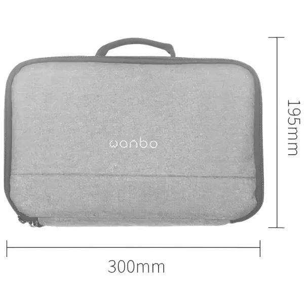 La bolsa de almacenamiento para el proyector portátil Wanbo X1 Pro es una solución de primera calidad diseñada para mantener tu dispositivo seguro y organizado en todo momento. Confeccionada en nailon impermeable y resistente al polvo, garantiza una protección completa para tu proyector Wanbo X1 Pro. Su diseño extra grande, con dimensiones de 300 mm de longitud, 150 mm de ancho y 195 mm de altura, se adapta perfectamente al proyector Wanbo X1 Pro.