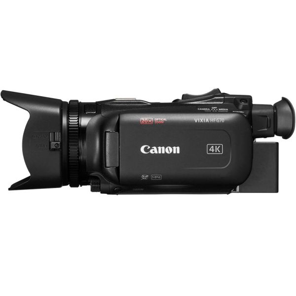 La filmadora Canon HF G70 tiene un diseño compacto y graba video en 4K de alta resolución. Cuenta con sensor CMOS UHD 4K de 1/2,3", un procesador de imagen DIGIC DV 6, una apertura circular de 8 hojas. Graba como un profesional con esta compacta filmadora con enfoque automático avanzado, zoom óptico de 20x y estabilización de 5 ejes, es excelente para vídeos fluidos y precisos. Posee pantalla táctil capacitiva LCD de 3.5" más grande, un EVF OLED inclinable de 0,36" de mayor resolución, graba solo en formato MP4 y solo video rápido USB tipo C salida con soporte UVC para transmisión en vivo a una computadora. La filmadora Canon HF G70 puede grabar simultáneamente hasta video UHD 4K30 3840x2160p en tarjetas SD disponibles por separado utilizando las ranuras para tarjetas SD duales incorporadas. La lente cuenta con enfoque automático avanzado, un amplio ángulo de visión de 29.3 y un zoom óptico de 20x, que permite hacer zoom a 627mm en 4K. La estabilización de imagen avanzada de cinco ejes reduce el movimiento y la fluctuación, especialmente en distancias focales más largas. También cuenta con un sistema AF híbrido avanzado con velocidad de enfoque ajustable para AF rápido o suave.