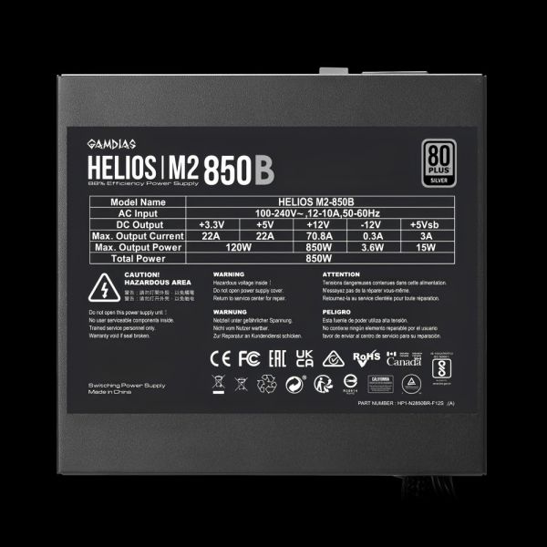 La Fuente de Alimentación Gamdias Helios M2-850B 80 Plus Silver 850 W es una solución de energía avanzada para cualquier entusiasta de PC que desee un rendimiento eficiente y estable. Con una certificación 80 PLUS Plata, esta fuente de alimentación ofrece hasta un 88% de eficiencia, lo que garantiza un consumo energético reducido y un rendimiento optimizado del sistema. Ideal para configuraciones de alto rendimiento, la Helios M2-850B está preparada para soportar los últimos estándares de conectividad ATX 3.1 y PCIe Gen 5.1, asegurando compatibilidad con las GPUs más avanzadas. Diseñada con un raíl único de +12V y tecnología DC a DC, esta fuente de alimentación proporciona una regulación precisa de la tensión, lo que se traduce en un funcionamiento estable. Los condensadores de alta calidad y un ventilador inteligente de 120 mm aseguran una durabilidad prolongada y un funcionamiento silencioso, ajustando automáticamente la velocidad del ventilador según la temperatura y carga. Sus cables planos negros no solo añaden un toque elegante, sino que también mejoran el flujo de aire y la gestión de cables. Con protecciones integrales contra sobretensiones, cortocircuitos y más, la Helios M2-850B es la elección perfecta para quienes buscan fiabilidad y rendimiento en su sistema.
