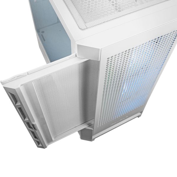 DUOFACE RGBBrillante Escenario de Iluminación y Excelente Rendimiento de RefrigeraciónDuoface RGB es una combinación de elegancia y rendimiento de refrigeración. Con dos paneles frontales distintivos, uno para efectos de iluminación RGB deslumbrantes; el otro para un flujo de aire superior y un rendimiento de refrigeración optimizado. Además, también incluye dos enormes ventiladores ARGB de 140 mm, otro de 120 mm y un logotipo resaltado para ofrecerte un control avanzado de la iluminación. Duoface RGB es todo un diseño de torre media de 230mm que ofrece abundante espacio para el refrigerador de la CPU, gestión de cables, compatibilidad para una placa base E-ATX y tarjetas gráficas de gama alta de hasta 330mm. Es una mejora en todos los aspectos en comparación con gabinetes para juegos previos.
