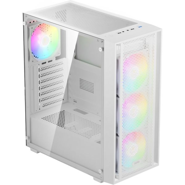 El Gabinete Gamdias Aura GC2 Elite Mesh RGB es la opción ideal para los entusiastas del gaming que buscan un diseño elegante y un rendimiento excepcional. Este gabinete semitorre ATX combina funcionalidad y estética, ofreciendo retroiluminación RGB integrada que transforma cualquier espacio en un ambiente moderno y futurista. Su panel frontal de malla asegura un flujo de aire óptimo, mientras que los 4 ventiladores RGB fijos de 120 mm garantizan una refrigeración constante y silenciosa. El Aura GC2 Elite presenta un panel lateral de vidrio templado, permitiendo una vista completa de su sistema de hardware en funcionamiento, lo que facilita la instalación y realce del interior. Con soporte para placas base ATX, Micro-ATX y Mini-ITX, ofrece versatilidad para cualquier configuración. Además, su espacio interno acomoda GPU de hasta 340 mm, asegurando compatibilidad con las tarjetas gráficas más potentes. Diseñado para la eficiencia en el manejo de cables, el gabinete incluye una cubierta para la fuente de alimentación, promoviendo un aspecto limpio y profesional. La instalación de múltiples ventiladores y radiadores, junto con accesibles puertos USB y conectividad de audio, convierten al Gamdias Aura GC2 Elite en la elección perfecta para gamers exigentes.