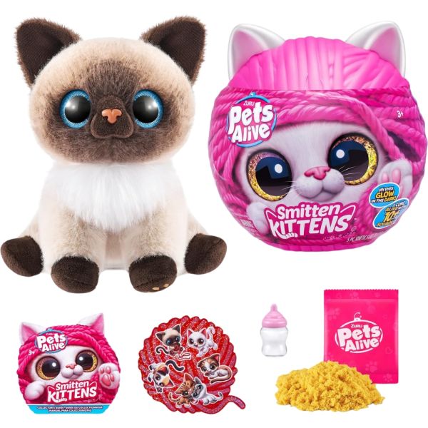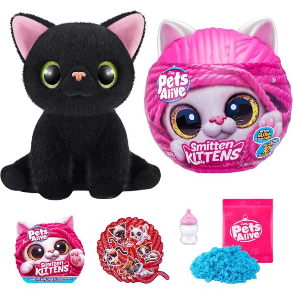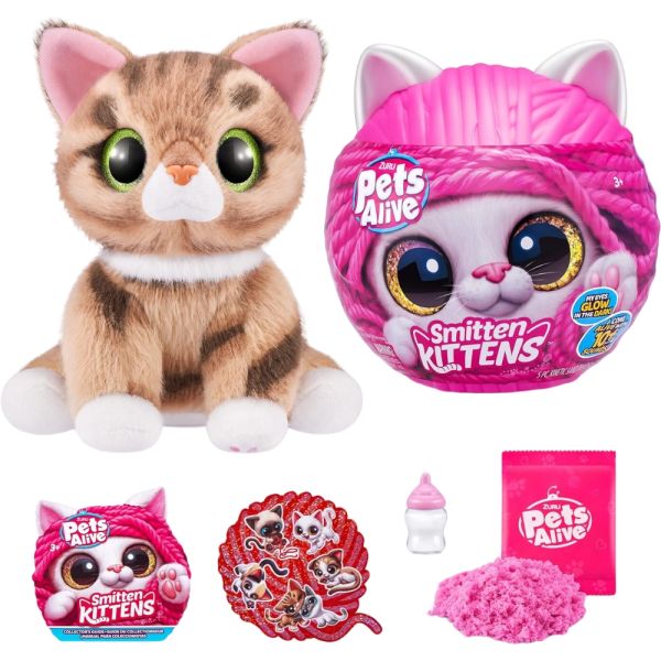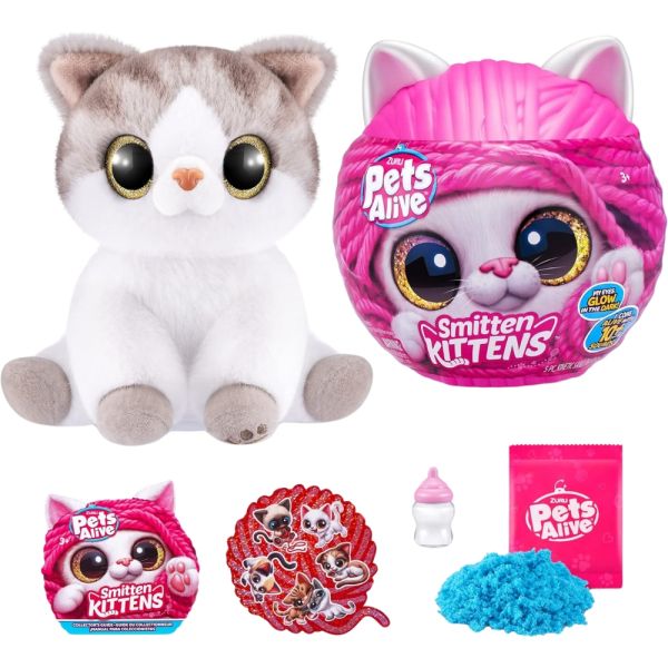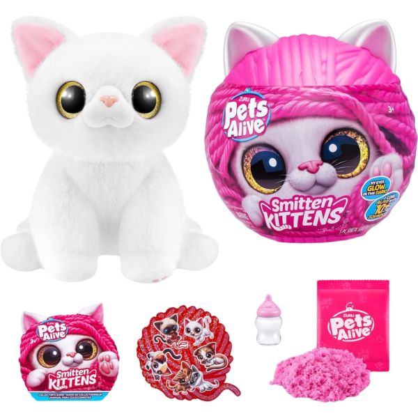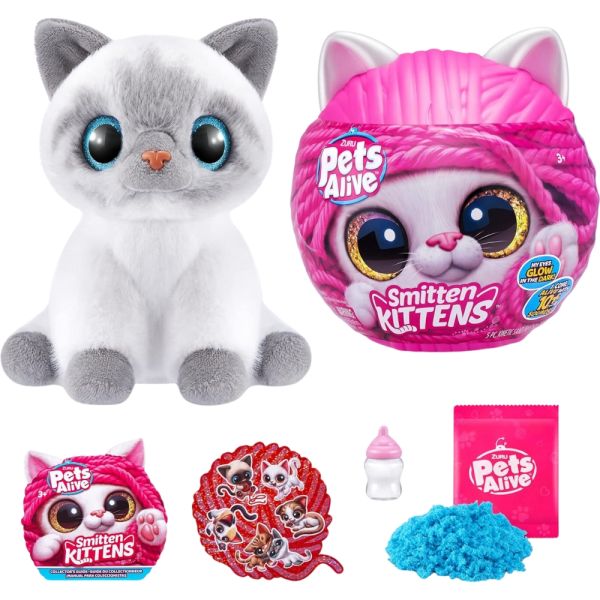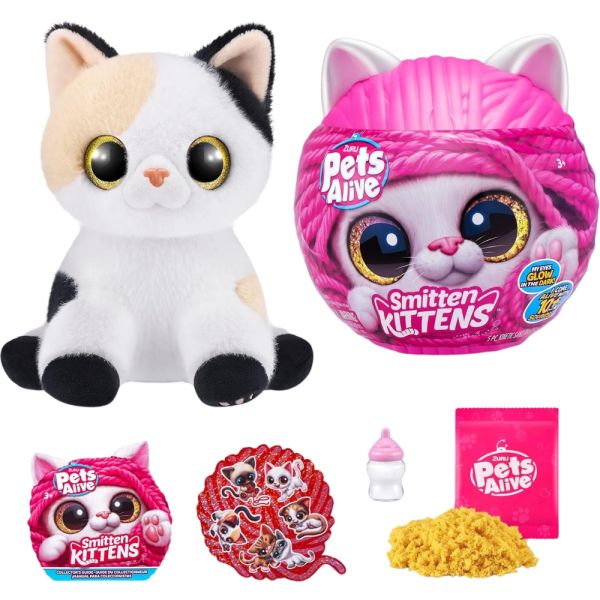 El Gato de Peluche Sorpresa Zuru Pets Alive Smitten Kittens es un compañero tierno y colorido, perfecto para ratos de diversión y entretenimiento, despertando la imaginación y creatividad en niños a partir de 3 años. Cuida y aliméntalo con su biberón y disfruta del dulce ronroneo que hará. Al Adoptarlo descubrirás 5 sorpresas, como un compuesto de arena para gatos. Además, emite más de 10 sonidos realistas de gatos y sus ojos brillan en la oscuridad. Es el regalo perfecto para cualquier niño amante de las mascotas Observación: Son enviados de manera aleatoria, sin distinción de color o diseño.
