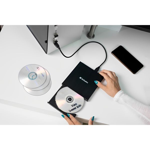 Transforme su experiencia de almacenamiento y copia de seguridad con la grabadora externa Verbatim Slimline. En un mundo donde las laptops modernas priorizan la delgadez al eliminar unidades ópticas integradas, este dispositivo compacto se presenta como la solución ideal para quienes aún confían en CDs y DVDs como medios de almacenamiento esenciales. Diseñada específicamente para laptops, ultrabooks y netbooks, esta grabadora externa permite la instalación de software y la realización de copias de seguridad, todo sin la necesidad de un adaptador de alimentación gracias a su conexión directa vía USB. De un tamaño apenas mayor que un DVD estándar, este grabador y lector a su vez, es increíblemente portátil y cabe fácilmente en su bolsillo, haciendo que nunca resulte un inconveniente llevarla consigo. Además, la inclusión del software Nero Burn and Archive ofrece funciones avanzadas como DiscSpan, MediaHome y SecureDisc, proporcionando herramientas esenciales para organizar, grabar y proteger sus archivos más importantes.