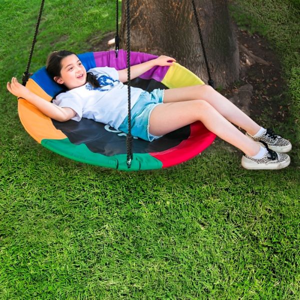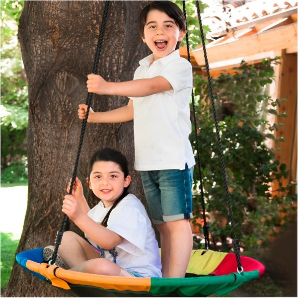 La hamaca ovalado QRubber Glow Up es el complemento perfecto para cualquier espacio de juego infantil. Diseñada con una versatilidad increíble, puede usarse tanto como un columpio clásico como un asiento para balancearse, proporcionando horas interminables de diversión y entretenimiento para niños de todas las edades. La construcción robusta y duradera de la hamaca está garantizada gracias a sus materiales de alta calidad, incluyendo tejido oxford 900D y aleación de acero. Su estructura resistente soporta hasta 150 kg, asegurando tanto la durabilidad como la seguridad para los pequeños aventureros. Además, es resistente a la intemperie y cuenta con protección contra rayos UV, ideal para el uso exterior sin preocupaciones. La instalación de la es simple y rápida, permitiendo a los niños disfrutar de su nueva área de juegos en minutos. Su diseño multicolor vibrante no solo atraerá la atención, sino que también fomentará el reconocimiento de colores.