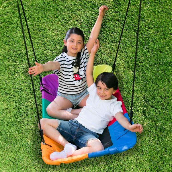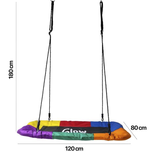 La hamaca rectangular QRubber Glow Up es el complemento perfecto para cualquier espacio de juego infantil. Diseñada con una versatilidad increíble, puede usarse tanto como un columpio clásico como un asiento para balancearse, proporcionando horas interminables de diversión y entretenimiento para niños de todas las edades. La construcción robusta y duradera de la hamaca está garantizada gracias a sus materiales de alta calidad, incluyendo tejido oxford 900D y aleación de acero. Su estructura resistente soporta hasta 150 kg, asegurando tanto la durabilidad como la seguridad para los pequeños aventureros. Además, es resistente a la intemperie y cuenta con protección contra rayos UV, ideal para el uso exterior sin preocupaciones. La instalación de la es simple y rápida, permitiendo a los niños disfrutar de su nueva área de juegos en minutos. Su diseño multicolor vibrante no solo atraerá la atención, sino que también fomentará el reconocimiento de colores.