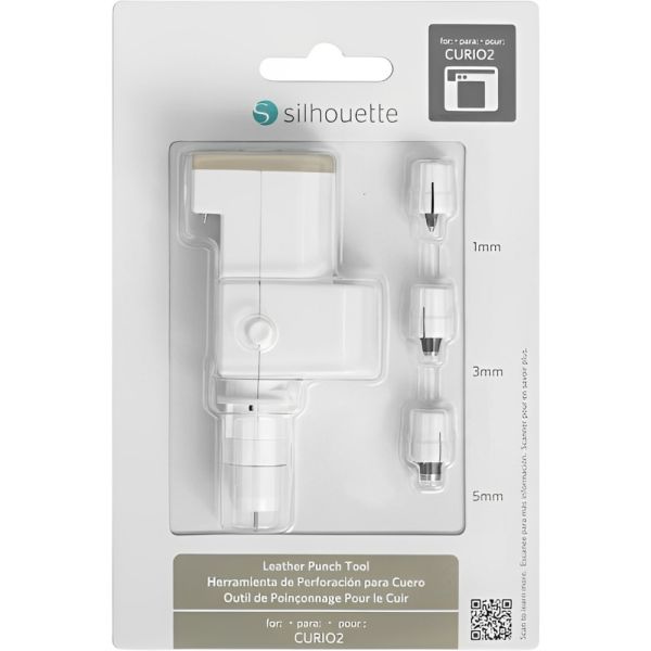 La herramienta perforadora de cuero es una herramienta eléctrica que perfora agujeros en materiales compatibles, como cartulina y cuero sintético . Esta herramienta se puede conectar directamente al carro motorizado de las máquinas compatibles, lo que permite una instalación rápida y sencilla. Esta herramienta funciona girando la punta para perforar el agujero en el material. Este juego incluye puntas de 1 mm, 3 mm y 5 mm. Se pueden adquirir puntas de repuesto individuales.