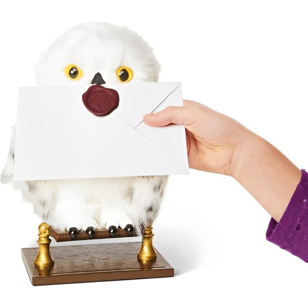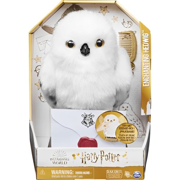 Con más de 15 sonidos y movimientos realistas, este peluche de búho cobra vida mágicamente. Interactúa con Hedwig acariciando sus suaves plumas: ella responde con cariñosos gorjeos y movimientos de cabeza. Coloca tu dedo en su pico para que juegue a mordisquearlo cuando esté feliz. Observa cómo reacciona a tu tono de voz, gorjeando suavemente cuando le hablas con dulzura. Utiliza el sobre de Hogwarts para enviar mensajes secretos: Hedwig lo sostiene hasta que acaricies su cabeza tres veces con el código interactivo. Perfecto para niños a partir de 5 años, este juguete interactivo inspira el juego imaginativo ¡y es un regalo mágico!