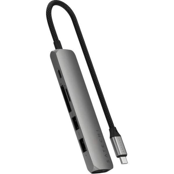El Hub Satechi Multiport 6 en 1 USB-C en Space Gray (modelo ST-P6SM) es un accesorio slim y portátil que aumenta la conectividad de dispositivos con puerto USB-C. Ofrece una variedad de puertos, incluyendo HDMI 4K que permite una resolución de hasta 60 Hz para video de alta calidad, carga a través de USB-C Power Delivery, y tres puertos USB-A con velocidades de transferencia de hasta 10 Gbps. Además, el hub cuenta con un puerto Gigabit Ethernet que proporciona una conexión a internet estable y rápida. Su diseño compacto lo hace ideal para su uso en el hogar o la oficina, asegurando compatibilidad con una amplia gama de dispositivos USB-C, convirtiéndolo en una herramienta versátil y eficiente para aumentar la funcionalidad de tu equipo.