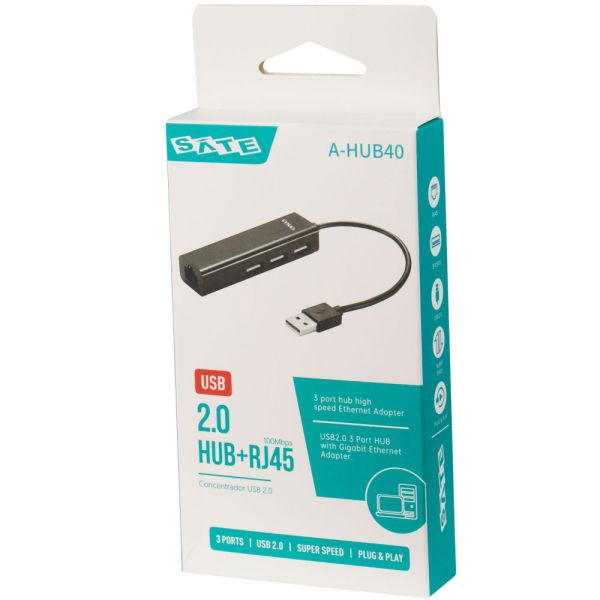 El Hub Satellite A-HUB40 tiene un diseño compacto y portátil, ayuda a facilitar la transmisión de datos con velocidad de 100 Mbps, cuenta con 3 puertos USB 2.0 para conectar tus dispositivos periféricos y un adaptador Ethernet para una conexión a internet por cable.