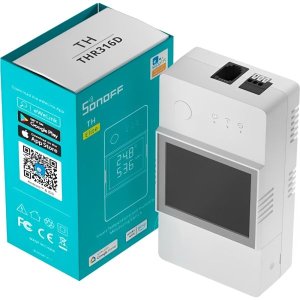 El Sonoff TH Elite THR316D es un dispositivo de conmutación inteligente y un sensor de temperatura y humedad diseñado para proporcionar control y automatización a sus dispositivos eléctricos mientras mide las condiciones ambientales.