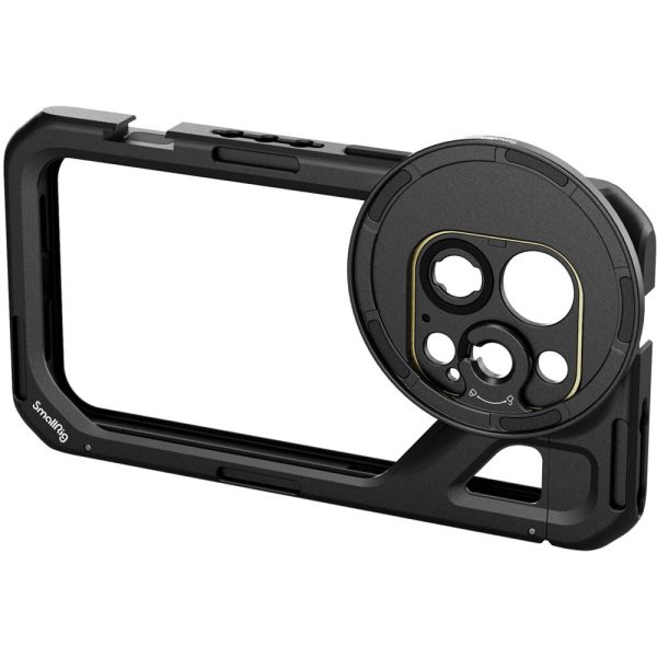 Transforma tu teléfono inteligente en una plataforma de filmación móvil con la incorporación de esta jaula de video móvil para iPhone 15 Pro de SmallRig . La jaula es el núcleo de la plataforma móvil que puedes personalizar con una variedad de accesorios opcionales. Fija elementos a una gran cantidad de soportes roscados de 1/4"-20 y zapata fría, como luces LED, manijas y un micrófono. También se admiten accesorios de liberación rápida de SmallRig compatibles. Mejora aún más el contenido con lentes opcionales, lo que aumenta el sistema existente de tu iPhone. Se incluye una placa posterior de montura M de 67 mm, pero hay placas posteriores opcionales disponibles para otros tipos de lentes. Una conveniente puerta con bisagras te permite comenzar rápidamente. Presiona el botón para deslizar fácilmente tu teléfono, mientras que el acolchado de silicona integrado lo protege de daños.