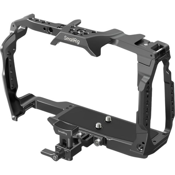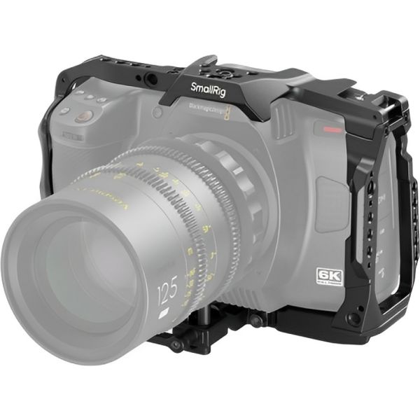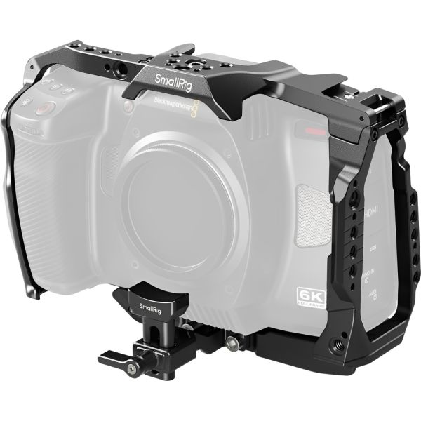 Protege tu Blackmagic Design Cinema Camera 6K con esta resistente jaula de SmallRig, diseñada específicamente para brindar seguridad, estabilidad y versatilidad en el montaje de accesorios. Fabricada en aleación de aluminio, ofrece protección completa con puntos de bloqueo múltiples, acceso total a los controles y conectores, y compatibilidad con soportes y adaptadores de lentes como el Sigma MC-21/31. Incorpora múltiples roscas de 1/4"-20 y 3/8"-16 tipo ARRI, riel lateral NATO, zapata fría y un mango deslizante giratorio para ángulos de disparo más dinámicos. Ideal para flujos de trabajo profesionales en grabación horizontal o vertical.