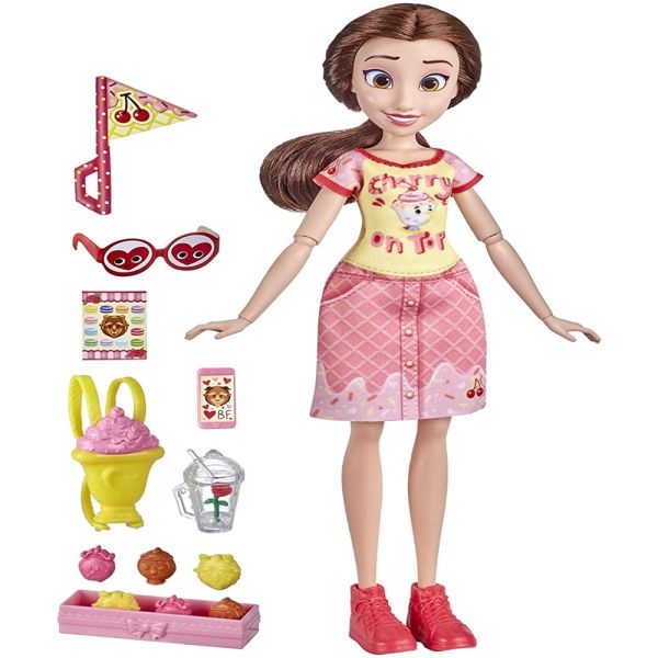 El Juguete Hasbro Disney Princess ideal para jugar con amigos o familiares, dispone de un top que cuenta con un dibujo de chip y la expresión Cherry on top. Además, cuenta con muchos accesorios, una mochila en forma de golosina helada, un vaso con diseño de rosa, teléfono celular, lentes y un banderín para jugar a que Bella anima a Vanellope a ganar carrera. Incluye ropa, mochila, 6 macarrones, caja, lentes, teléfono celular, vaso y banderín.