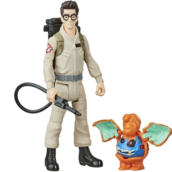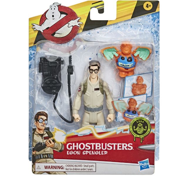 Figuras de acción retro Egon Spengler acompañado de un espeluznante fantasma. Las características de los cazafantasmas asustan a una sorpresa espeluznante activada por botón.