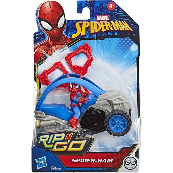 Con el juguete Hasbro Marvel Spider-Ham, entra en acción en tu ciclo de estilo Spidey. Imagina al superhéroe pasando a la siguiente aventura con la figura de 6 pulgadas y el vehículo ciclista. Inserte el cable dividido y tira para hacer que su Spider-Cycle entre en acción.