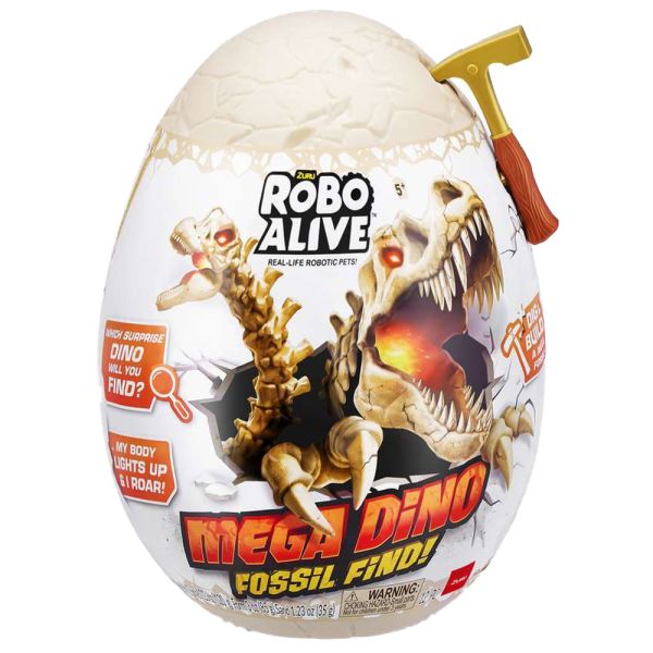 ¡Embárcate en una emocionante expedición de descubrimiento con el Juguete Huevo Gigante Zuru Robo Alive Mega Fossil Find! Utiliza la herramienta de excavación incluida para cavar a través de rocas, arena y slime en busca de uno de los cuatro fósiles de dinosaurios coleccionables. Una vez que encuentres tu fósil, ensambla las piezas para dar vida a tu propio esqueleto de dinosaurio. Con ojos iluminados y rugidos de dinosaurio realistas, estos fósiles de Dino son únicos y no se parecen a nada que hayas visto antes. ¡Sumérgete en la diversión paleontológica con el Zuru Robo Alive Mega Fossil Find y crea tu propia colección de dinosaurios!.