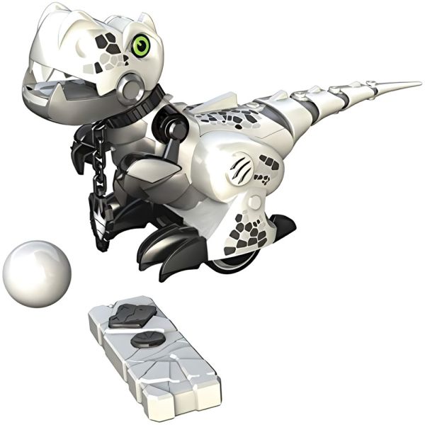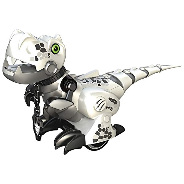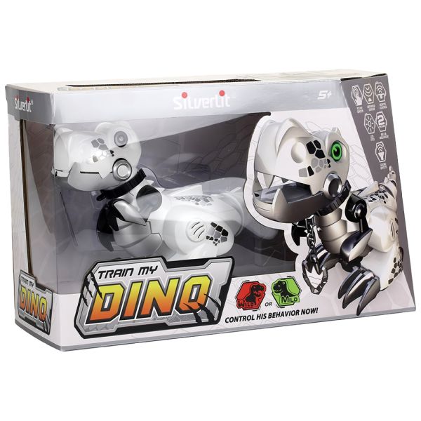 ¡Domina a tu propio amigo jurásico con el Juguete Robot Silverlit Train My Dino! Con 2 modos de juego emocionantes, este dinosaurio salvaje con ojos rojos realiza movimientos aleatorios, mueve la cola y ruge mientras esquiva obstáculos gracias a sus sensores inteligentes. Ponle el collar para activar el modo mascota, donde responde con un rugido al sentir contacto. Controla sus movimientos con el control remoto, haz que te siga a todas partes y responda a tus gestos con sus sensores de detección de movimiento. ¡Incluso puedes usar el control remoto para que atrape tu pelota! Train My Dino funciona con 4 pilas AAA, y el control remoto requiere 2 pilas AAA (no incluidas). ¡Prepárate para vivir una emocionante aventura con tu propio T-rex domesticado!