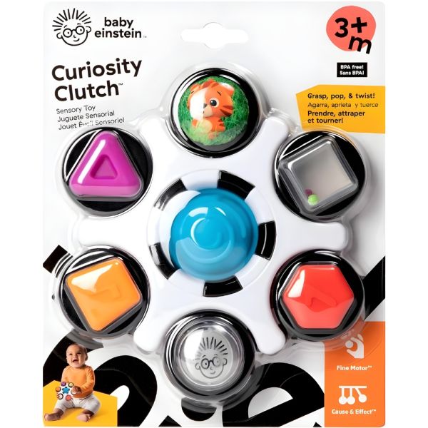 Juguete Sensorial Baby Einstein Curiosity Clutch es un cautivador juguete diseñado para estimular los sentidos y el desarrollo de bebés y niños pequeños de 3 a 36 meses. Con un diseño divertido y colorido, este juguete presenta a Tinker the Tiger, un personaje popular de los libros y videos de Baby Einstein. El Curiosity Clutch ofrece numerosas actividades para que el bebé explore, desde agarrar y hacer estallar hasta presionar y girar. Este juguete contribuye al desarrollo de habilidades motoras finas y al entendimiento de causa y efecto a través del juego activo con ambas manos. Con sonidos de cascabeles y patrones de alto contraste, el Curiosity Clutch captura la atención del bebé, estimulando su desarrollo sensorial. Además, promueve la curiosidad y el juego abierto con 6 actividades únicas que invitan al bebé a interactuar de diversas maneras. Fabricado con materiales libres de BPA, el Curiosity Clutch es seguro y fácil de limpiar, siendo lavable a mano. Este juguete sensorial es una opción ideal para fomentar el desarrollo cognitivo y sensorial desde una edad temprana, brindando a los padres una herramienta educativa y entretenida para sus pequeños exploradores. Apropiado para niños de 3 meses en adelante.