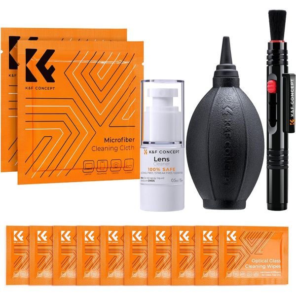 Kit de Limpieza Profesional.1 Lápiz de limpieza con cepillo y cabeza carbono, 1 Soplador de aire, 2 Paños de Limpieza microfibra con envasado al vacío individual (Tamaño: 150 * 150mm), 10PCS Toallitas antivahos envasado al vacío, 15ml líquido de limpieza sin alcohol.