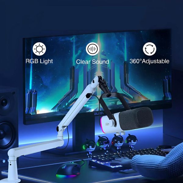 El Kit Micrófono Fifine TAM8W RGB USB-C XLR es la herramienta ideal para creadores de contenido, podcasters y gamers que buscan calidad sonora y versatilidad. Este micrófono dinámico cardioide combina conexiones USB y XLR, ofreciendo una flexibilidad excepcional para cualquier escenario de grabación. La opción USB es perfecta para uso diario, sencilla y portátil, mientras que la conexión XLR se adapta a configuraciones profesionales, proporcionando la capacidad de enviar la señal a múltiples dispositivos simultáneamente. Con una respuesta de frecuencia de 50 Hz a 16 KHz, el Fifine TAM8W asegura un audio equilibrado y nítido, destacándose en los tonos altos sin resultar estridente. Su diseño direccional rechaza eficazmente el ruido fuera del eje, garantizando grabaciones claras y fieles al sonido original. La inclusión del anillo RGB añade un toque personalizado con más de 10 colores de luz, sincronizándose con los accesorios de tu PC para crear un ambiente increíble, incluso en condiciones de poca luz. Ideal para gaming, podcasting y estudios de grabación, este micrófono no solo aísla el sonido impecable del ruido ambiental, sino que también ofrece antiinterferencia mejorada y alta fidelidad para una experiencia auditiva excepcional.