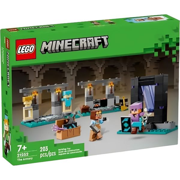 La Armería LEGO Minecraft 21252 - 203 Piezas es el set de construcción perfecto para explorar la creatividad de los niños y niñas mayores de 7 años, adentrándolos en las emocionantes aventuras del mundo Minecraft. Este versátil set incluye figuras icónicas del popular videojuego, como las minifiguras de Alex y el armero, además de tres entornos construibles para personalizar la experiencia de juego infinito. Las especificaciones detallan un completo arsenal, que incluye un hacha dorada, dos espadas, dos escudos y un tridente encantado, ideales para prepararse para cualquier desafío en el mundo de Minecraft. Los pequeños constructores pueden explorar un área de trabajo completamente equipada con un yunque, horno, piedra de afilar y caldero, junto con una sala de exposición de armaduras dotada de un cofre para almacenar las armas. Con 203 piezas, este set no solo estimula habilidades motoras y la creatividad, sino que también ofrece horas continuas de diversión. Sus dimensiones compactas, de aproximadamente 6 cm de altura, 9 cm de anchura y 6 cm de profundidad, lo hacen ideal para guardar o exhibir en cualquier habitación.