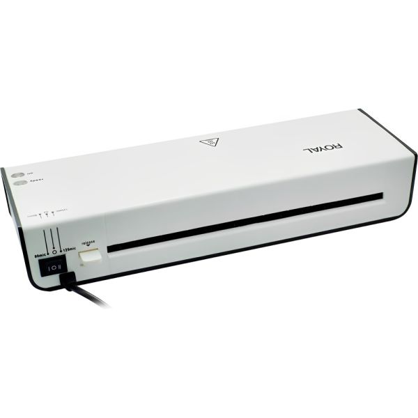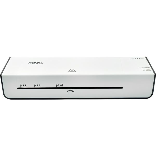 La plastificadora de Royal ofrece un acabado de gran calidad en un formato compacto, ideal para usar en el hogar, la oficina o el aula. Con guías nítidas y un sistema de alimentación de dos rodillos, la plastificación se realiza de manera rápida y sencilla. Compatible con tamaño de entrada A4 (23 cm) y con rodillos de laminación caliente a dos temperaturas, el dispositivo se calienta en 3-5 minutos y soporta bolsas de 3 a 5 mil (80 a 125 micrones) de grosor, con un espesor máximo de laminación de 0,4 mm. Incluye modo de reposo automático después de 60 minutos y un ciclo de trabajo recomendado de 30 minutos. La plastificadora cuenta con indicación óptica LED para el inicio y listo, laminación continua, liberación de atasco y viene con un kit de inicio. Funciona con un voltaje y corriente nominal de 220V-240V, 50-60Hz/1.0A, 245W.
