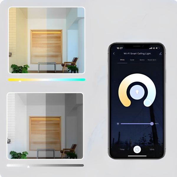 La Lámpara Inteligente de Techo Moes WCL-TD25-RCW-Y-WH Wifi en color blanco es la elección perfecta para modernizar la iluminación de su hogar. Diseñada para ofrecer máxima eficiencia y adaptabilidad, esta lámpara LED regulable de 25 W transforma cualquier espacio con una luz suave y eficiente, alcanzando un ángulo luminoso de 120 grados que garantiza una cobertura completa y uniforme. Gracias a su conectividad WiFi, puede controlar la iluminación de su hogar sin esfuerzo utilizando solo su voz. Compatible con los populares asistentes de voz como Google Assistant, Alexa y la aplicación TUYA Smart, ofrece una experiencia de usuario superior, donde la innovación y la comodidad se unen. Instale la Lámpara Inteligente de Techo Moes en cualquier habitación para una iluminación personalizada, ya sea en la sala de estar, el dormitorio o la cocina. Sus características inteligentes le permiten ajustar la intensidad de la luz para adaptarse a diversas ocasiones, desde una reunión familiar hasta un momento de relajación. Actualice su espacio con este producto que combina estilo contemporáneo y tecnología avanzada para una vida más inteligente y eficiente.