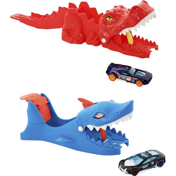 El Lanzador de dinosaurio y el Lanzador de tiburón presentan emocionantes desafíos para los niños, quienes deben lanzar los vehículos con precisión para evitar quedar atrapados en las mandíbulas de sus némesis. Con dos puntos de conexión en cada lanzador, los niños pueden ampliar su mundo de Hot Wheels City (se vende por separado), añadiendo nuevos desafíos y mejorando los sets que ya tienen. Además, con cada uno se puede jugar de forma independiente sin necesidad de conectarse a otras pistas. Cada set incluye un vehículo Hot Wheels a escala 1:64, ofreciendo infinitas posibilidades de juego.Observación:Este producto viene desde el fabricante en forma de un surtido variado de modelos y/o colores (sin selección posible). Cada lanzador se vende por separado, sujeto a disponibilidad. Los colores y las decoraciones pueden variar.