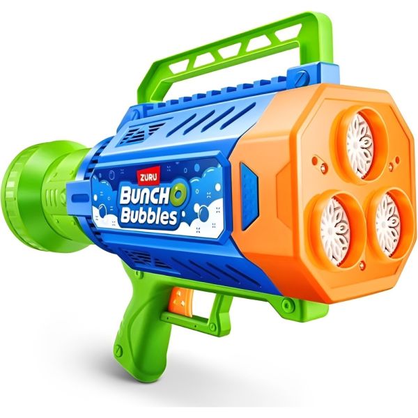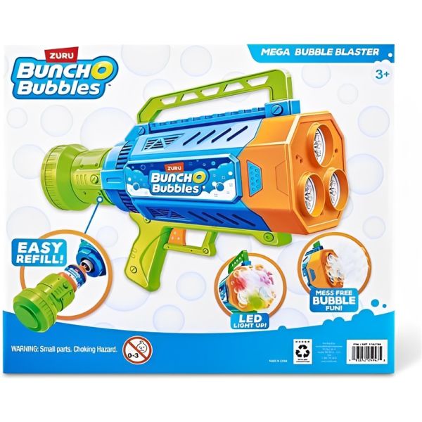 Despídete del desorden y la complicación de hacer burbujas. Simplemente coloca la solución de burbujas en el contenedor fácil de recargar para crear un flujo continuo de burbujas ¡y comienza la fiesta! Con luces LED y baterías recargables, este Blaster proporciona horas de entretenimiento. Es fácil de usar, sin necesidad de sumergir ni ensuciar, e incluye tres paquetes de recarga de solución de burbujas y una batería recargable. Recomendado para niños de 3 años en adelante.