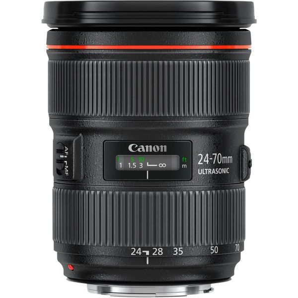 La lente Canon EF 24-70mm f/2.8L II USM es versátil con zoom de la serie L con calidad profesional que ofrece una calidad de imagen excepcional. La apertura máxima de f/2.8 permite trabajar en condiciones de iluminación difíciles y permitir un mayor control sobre la profundidad de campo. El motor ultrasónico (USM) tipo anillo permite enfocar rápidamente, de forma práctica y silenciosa. Cumpliendo las exigencias de la fotografía profesional en cuanto a calidad de imagen, además de un excelente rendimiento en los lentes de zoom profesional. Este objetivo zoom estándar está diseñado para cámaras réflex digitales Canon con montura EF Full Frame.