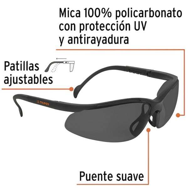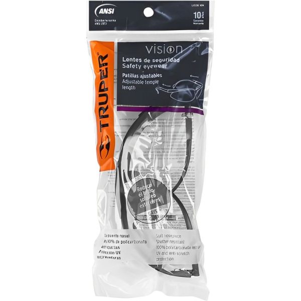 Los lentes de protección Truper TR14302 son la elección ideal para aquellos que buscan máxima seguridad y confort en sus actividades laborales y recreativas. Diseñados para su uso en la industria, construcción, talleres y reparaciones domésticas, estos lentes son ideales tanto para interiores como exteriores, siempre que el deslumbramiento solar no sea un inconveniente. Con una mica fabricada al 100% de policarbonato, ofrecen una protección UV eficiente, indispensable para cuidar tus ojos de los rayos solares nocivos. Además, sus características anti-rayaduras y anti-impactos aseguran durabilidad y resistencia en las condiciones más exigentes. El suave puente nasal está diseñado para brindar un ajuste cómodo, evitando irritaciones durante largas horas de uso. Las patillas ajustables garantizan un ajuste personalizado y seguro, mejorando la experiencia del usuario.