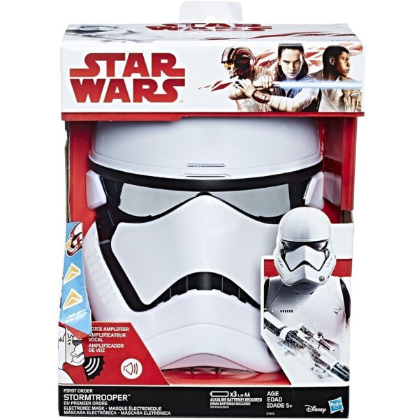 La Máscara Hasbro es ideal para jugar con amigos y familiares, electrónica con amplificador de voz de asalto de la primera orden, pueden disfrazarse de soldado de asalto, recrear aventuras y escenas del universo de Star Wars. Incluye máscara e instrucción.