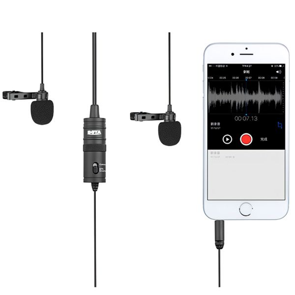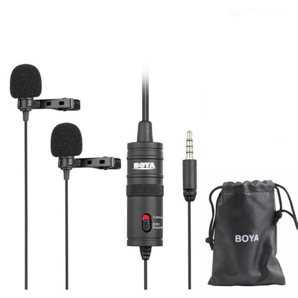 El micrófono Lavalier omnidireccional dual Boya BY-M1DM cuenta con dos micrófonos lavalier conectados a un único conector TRRS de 3.5mm, lo que facilita la grabación de dos personas al mismo tiempo en su teléfono inteligente, cámara DSLR/sin espejo, videocámara, grabadora, computadora o similar. dispositivo. Ideal para entrevistas, diálogos, podcasting, transmisión en vivo y cualquier situación que requiera dos parlantes.Características:Diseño de micrófono dual para dos parlantes.Trabajar con cámaras, teléfonos inteligentes y computadoras.Ideal para entrevistas, diálogos, podcasting y transmisión en vivo, etc.Patrón polar omnidireccional.Relación señal/ruido mejorada.Con cable de 4m(13') de longitud.Incluye parabrisas de espuma, clip de solapa, adaptador de 1/4” y batería LR44.