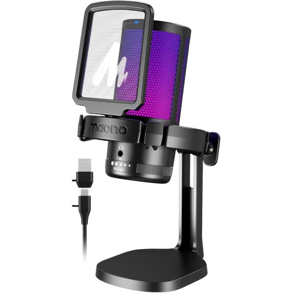El Micrófono con Soporte Maono Gamerwave DGM20S RGB USB es la elección perfecta para los apasionados del gaming y la creación de contenido. Diseñado con tecnología avanzada, este micrófono de condensador ofrece una captación cardioide de alta sensibilidad, ideal para garantizar una calidad de sonido clara y precisa. Con una conectividad versátil, que incluye USB y USB-C, es compatible con dispositivos de escritorio, laptops, PS4, PS5, y sistemas operativos MAC OS y WINDOWS, lo que lo hace extremadamente adaptable a tus necesidades. Una de sus características más destacadas es la función de reducción de ruido con un solo toque, que elimina interferencias no deseadas, asegurando que tu voz sea la protagonista. Además, su luz ambiental RGB con nueve modos diferentes, que se puede apagar según prefieras, añade un toque personal a tu experiencia. Este micrófono permite el monitoreo de latencia cero, una ventaja crucial para podcasters, streamers y gamers que buscan una experiencia auditiva sin retrasos. El Maono Gamerwave DGM20S es perfecto para podcasting, grabación, streaming, gaming y videoconferencias, garantizando siempre un audio profesional. Con un rango de frecuencia de 50Hz a 20kHz y una profundidad de bit/muestra de 48kHz/24Bit, ofrece un sonido rico y detallado, convirtiéndolo en una herramienta esencial para cualquier creador de contenido.