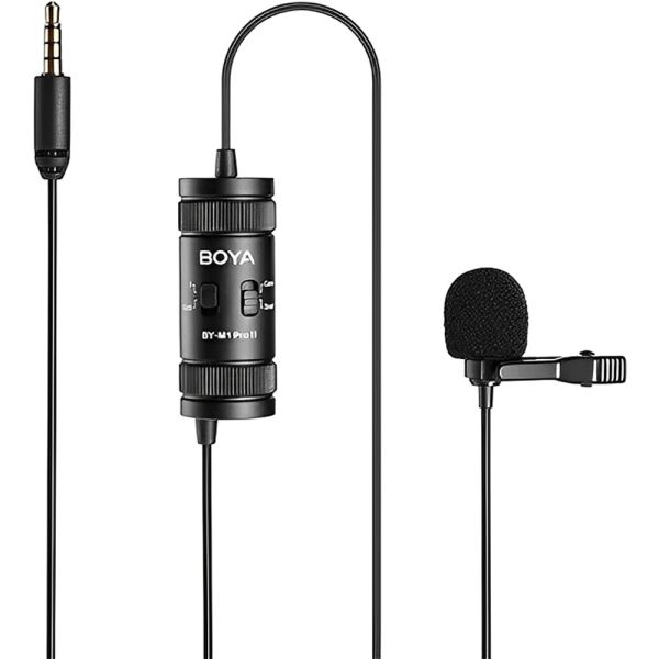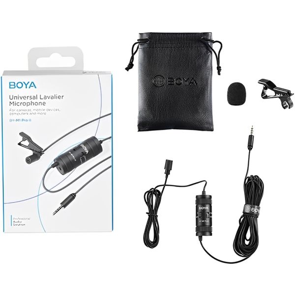 El Boya BY-M1 Pro II es un micrófono lavalier omnidireccional que captura sonido en 360 grados, ideal para entrevistas, transmisiones en vivo, discursos y más. Compatible con teléfonos inteligentes, cámaras DSLR, computadoras y grabadoras de audio, ofrece una calidad de sonido excepcional sin necesidad de baterías.