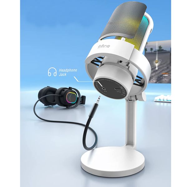 El micrófono Fifine A8 tiene un diseño elegante, es la combinación de respuesta de frecuencia de corte bajo y medios y agudos decentes brinda el audio más neutral. El soporte y el soporte antichoque están completamente instalados. También funciona en cualquier brazo articulado con el adaptador incluido. Los controles más útiles del juego: ganancia física y botón de tocar para silenciar. También el RGB se combina con cualquier configuración de juego, por medio de un botón que te dará 7 patrones distintos de iluminación, tú eliges si ser discreto o si quieres adaptarlo a tu juego o streaming y ponerlo a todo color. El RGB apagado y auriculares encendidos, active el modo de trabajo de forma rápida. El micrófono RGB mejora el atractivo de tu juego en vivo o imagen de video.