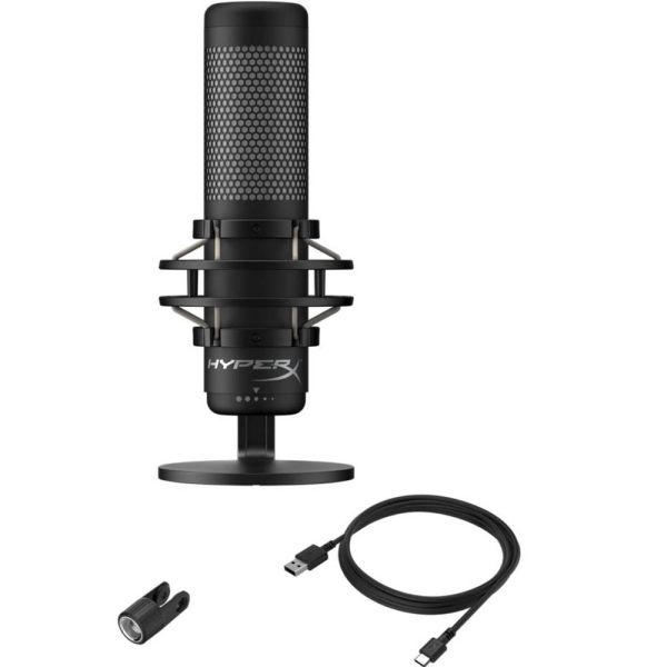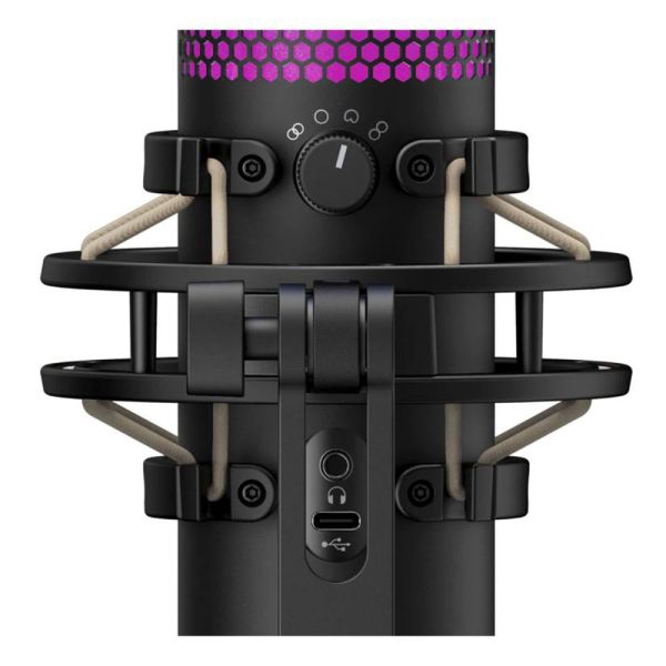 El HyperX QuadCast S RGB es un micrófono de condensador USB RGB la opción ideal para los jugadores o creadores de contenidos, ya sea para streamer o el podcaster con sonido de alta calidad. Posee iluminación RGB radiante con efectos dinámicos: personaliza una impresionante iluminación RGB y efectos dinámicos para una captura llamativa de estilo personalizable. Este micrófono viene con su propia montura anti-vibración para ayudar a reducir el murmullo cotidiano y un pop filter para amortiguar los desagradables sonidos explosivos. El indicador LED te permite conocer el estado del micrófono si la luz está encendida, el micrófono está activo, si la luz está apagada, el micrófono se silencia. Posee cuatro patrones polares seleccionables: (estéreo, omnidireccional, cardioide, bidireccional) para optimizar tu configuración de transmisión y mantener el enfoque en los sonidos que deseas ser escuchado.Especificaciones:Consumo de energía: 5V 125mAVelocidad de muestreo/bit: 48kHz/16-bitElemento: Micrófono condensador de electretoTipo de condensador: Tres condensadores de 14 mmPatrones polares: Estéreo, omnidireccional, cardioide, bidireccionalRespuesta de frecuencia: 20Hz–20kHzSensibilidad: -36dB (1V/Pa a 1kHz)Longitud del cable: 3mSalida de audífonosImpedancia: 32 ΩRespuesta de frecuencia: 20Hz - 20kHzSalida de potencia máxima: 7mWTHD: ≤ 0.05% (1kHz/0dBFS)SNR: ≥ 90dB (1kHZ, RL=∞)