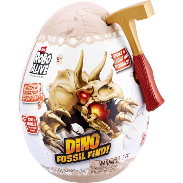 El Mini Huevo Zuru Dino Robo Alive Fossil Find 71115 te permite excavar fósiles de dinosaurios ocultos en roca, arena y slime usando la herramienta de excavación incluida. A medida que descubras cada fósil, podrás ensamblar las piezas y ver cómo cobra vida el esqueleto de tu dinosaurio. Con solo un golpe, tu Dino cobrará energía y activará impresionantes luces y sonidos que lo hacen aún más realista. Existen hasta 8 fósiles diferentes para coleccionar, lo que aumenta la diversión y el desafío. Ideal para los pequeños amantes de la ciencia, este set les permite convertirse en paleontólogos mientras se divierten y aprenden sobre el fascinante mundo de los dinosaurios. ¡Una experiencia educativa y emocionante para regalar!Observación:Existen 8 versiones del mini huevo disponibles, las cuales son enviadas de manera aleatoria, sin distinción del modelo.