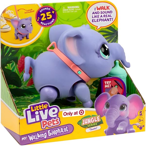 La magia de la minifigura Little Live Pets Toots elefante andante, un encantador elefante bebé que se convertirá en el compañero perfecto para los más pequeños. Con sus orejas suaves y una colita que se mueve alegremente, Toots no solo camina, sino que también hace divertidos sonidos y reacciones como risas, estornudos y, sí, hasta pedos, que harán reír a carcajadas a tus hijos. Este juguete interactivo es ideal para niños de 5 años en adelante, ofreciendo una experiencia de juego realista y educativa. Alimenta a Toots con su mamadera incluida, camina junto a ella usando la correa o simplemente disfruta de su ternura al mover la trompa y reaccionar al contacto. Viene con todo lo necesario para comenzar la diversión: correa, mamadera, manual de instrucciones y pilas incluidas. Fomenta la imaginación y el juego activo mientras los niños cuidan y se divierten con su nuevo amigo elefante. Convierte cada día en una aventura llena de risas y aprendizaje con Toots, el elefante bebé que camina y encanta.