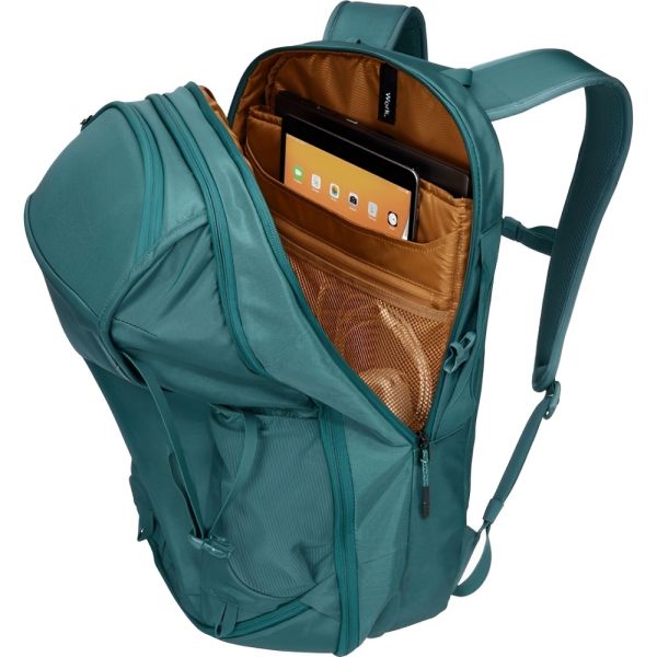 La mochila Thule EnRoute TEBP-4416 es el compañero perfecto para aquellos que buscan versatilidad y protección para sus dispositivos electrónicos. Diseñada para una laptop de 15.6 pulgadas y una tableta de 10.5 pulgadas, esta mochila de 30 litros ofrece un almacenamiento organizado y seguro. Con compartimientos separados, te permite mantener tu equipo de trabajo apartado de tus pertenencias personales, ideal para quienes transitan entre entornos laborales y actividades al aire libre. Los bolsillos elevados aseguran que tus dispositivos estén protegidos de golpes y caídas accidentales. El diseño incluye un bolsillo Rigid SafeZone que brinda protección extra a artículos valiosos como tu smartphone o gafas de sol. Además, cuenta con un bolsillo interior de TPU con cremallera que ofrece privacidad para tus objetos personales. La mochila se abre completamente, facilitando el empaque y acceso a ambos lados, y su compartimiento para artículos voluminosos garantiza que todo permanezca en su lugar gracias a su panel de malla con cremallera. Confeccionada en resistente nailon 400D aprobado por bluesign con cremalleras YKK, la Mochila Thule EnRoute TEBP-4416 combina funcionalidad, durabilidad y estilo. Ideal para profesionales dinámicos y aventureros urbanos.