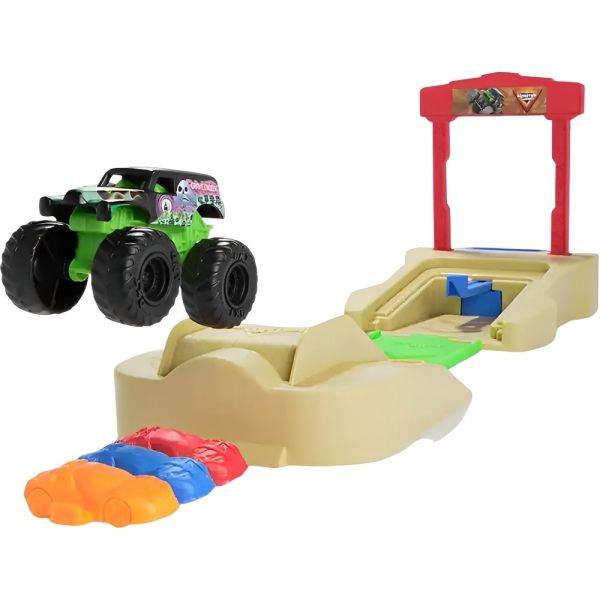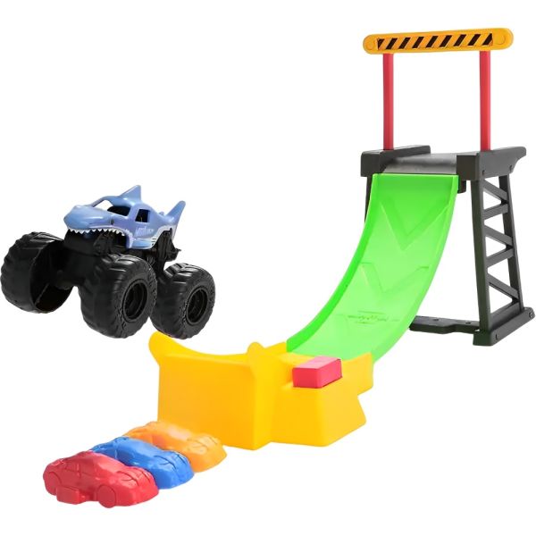 El Monster Truck Monster Jam Playset Launch & Race Jump 1:72 ofrece una experiencia llena de adrenalina con dos modos de juego: lanzamiento y salto. Incluye un camión a escala 1:72, un lanzador o rampa (según el set) y tres obstáculos diseñados para desafiar tus habilidades y recrear las acrobacias más impresionantes. Su diseño permite realizar maniobras dinámicas y emocionantes, brindando diversión sin límites para los fanáticos de Monster Jam.
