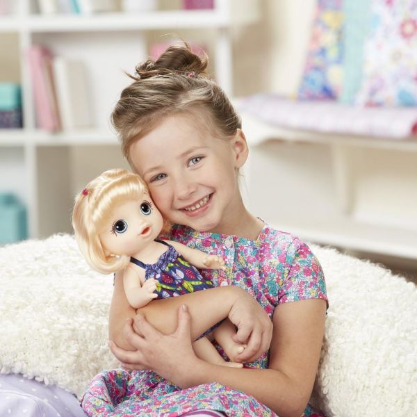 Hasbro presenta esta muñeca que ama comer sus alimentos, está creada para que los niños puedan interactuar y aprender la importancia de la alimentación. Están incluidas dos preparaciones de papitas que parecen muy reales, aparte de eso, emite más de 50 sonidos que hacen de este juego algo muy divertido e interesante. Moja y ensucia el pañal, al darle liquidos con el biberon, sabrás que es hora de cambiar el pañal. Está recomendado para niños de 3 años en adelante.