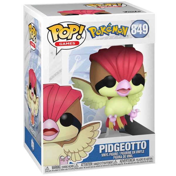 Muñeca Funko Pop hecho de vinilo con una altura aproximada a 10 cm. S7 Pidgeotto es un Pokémon de una evolución voladora de Pidgey, está lista para acompañarte en tus próximas aventuras en el mundo de Pokémon.