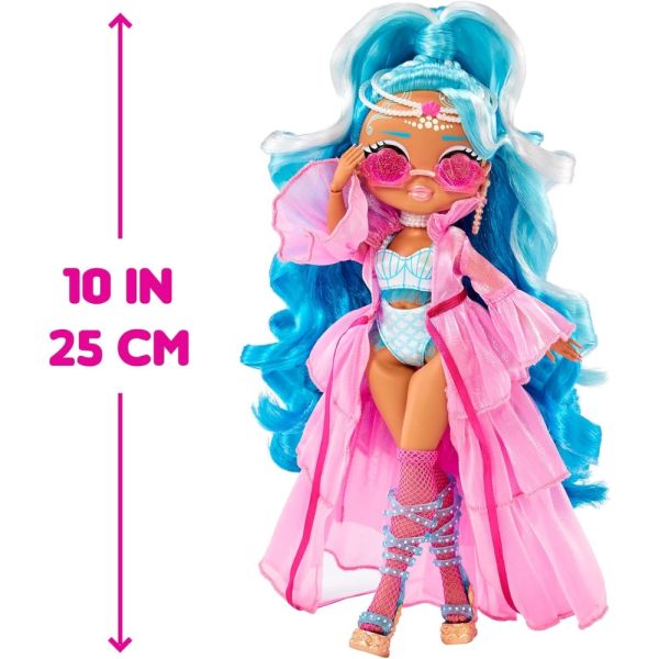 La Muñeca L.O.L. Surprise Fashion Show Lady Braids para Múltiples Peinados es una opción colorida y divertida con capacidad de cambiar la imagen de la muñeca utilizando la espuma para pelo WOW y herramientas de peinado incluidas. Permite crear trenzas, frizado, rizos, ondas, cabello lacio y más, todo sin usar calor. Lady Braids tiene características deslumbrantes, un cabello perfecto para peinar y cuerpo articulado para diferentes poses creativas. El set incluye: 1 muñeca OMG Fashion Show, outfit, aretes, brazalete con anillo de diamantes, zapatos, lentes glamorosos, gargantilla enjoyada, cinturón, elásticos transparentes para el cabello, hebilla para el cabello, gomitas para pelo, pinza para el cabello con gemas, rizador de cabello, combinación de cepillo/peine, WOW Magic Mousse y revista.