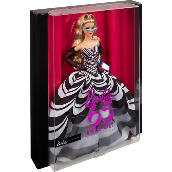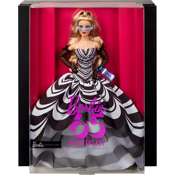 La Muñeca Mattel Barbie Signature 65th Anniversary HRM58 es la celebración perfecta para conmemorar 65 años de estilo y elegancia. Esta edición de colección captura la esencia de la muñeca Barbie original de 1959, presentando un look conmemorativo que encantará a todos los coleccionistas y amantes de la moda. El vestido blanco y negro, acentuado con toques de zafiro, refleja el estilo clásico que ha definido a Barbie por generaciones. Los detalles cuidadosamente seleccionados, como sus lentes de sol chic, la sombra de ojos azul y los labios rojos, añaden un toque moderno a su atuendo nostálgico. Los elegantes guantes negros largos completan este look icónico. Perfecta para exhibir, la Muñeca Barbie Signature viene con un soporte. Los fanáticos de Barbie encontrarán en esta muñeca una adición valiosa a su colección, o un regalo inolvidable para ocasiones especiales.