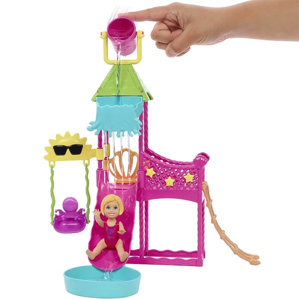 Explora el emocionante mundo del trabajo con las muñecas y juegos Barbie First Jobs Skipper. Inspirado en la película Skipper and the Big Babysitting Adventure, este conjunto permite a Skipper ampliar su currículum al convertirse en socorrista en un parque acuático. Con un tobogán de agua real y equipos funcionales, los niños pueden recrear momentos de diversión y aventura en el mundo laboral.El conjunto incluye la muñeca Skipper con un uniforme inspirado en su atuendo en pantalla, una muñeca pequeña, el parque acuático de varios niveles, un cachorro que chorrea agua y más de 5 accesorios. Los niños pueden llenar el cubo en la parte superior con agua y luego tirar el agua por el tobogán hacia la piscina para lograr un efecto realista e impresionante. Además, el parque acuático cuenta con un columpio, una escalera de cuerda y un puente adornado con estrellas giratorias.Con el cachorro chorreante, los niños pueden llenarlo de agua y apretarlo para descubrir una divertida sorpresa. También pueden enriquecer sus historias con accesorios adicionales, como un silbato, binoculares y una boya. Este set de parque acuático Skipper está lleno de actividades emocionantes y es una excelente idea de regalo para niños a partir de 3 años. Déjales sumergirse en el mundo del trabajo y la diversión con Barbie First Jobs Skipper.Observación:Las muñecas no se sostienen solas. Los colores y las decoraciones pueden variar.