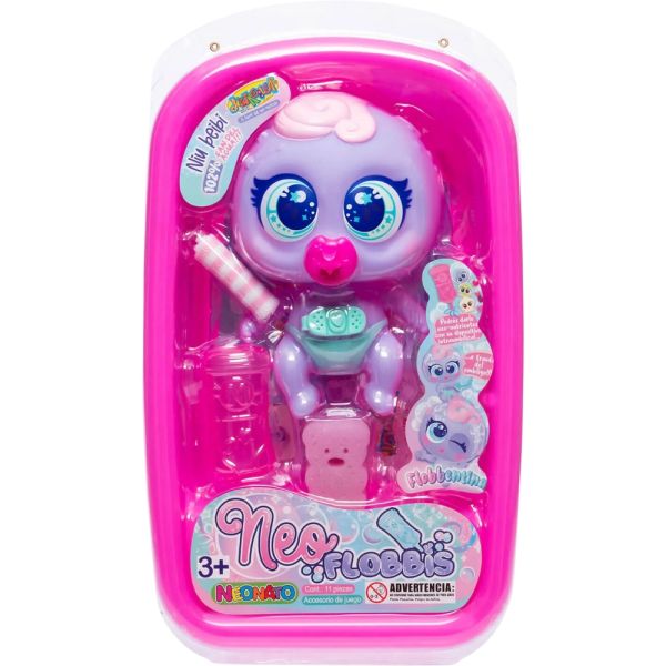 NeoFlobbis Flobbeti es un amante del agua y puedes alimentarlo con neo-nutrientes para asegurar su crecimiento saludable. El set de 11 piezas incluye un muñeco, mamila, esponja, mini toalla, chupón, tina, acta de nacimiento, identificación cunera, foto, cartilla de vacunación, instructivo de juego. Ofrece una experiencia completa y educativa, que brindará momentos llenos de diversión y cuidado.