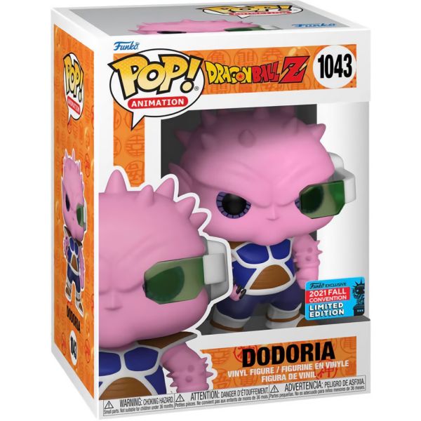 Muñeco Funko Pop hecho de vinilo con una altura aproximada a 10 cm. Directamente desde la serie de anime y manga Dragon Ball viene una figura de vinilo estilizada de Dodoria. Un terrible villano aliado de Frieza, está listo para ser parte de tu colección. Ideal para los fanáticos de Dragón Ball Z.