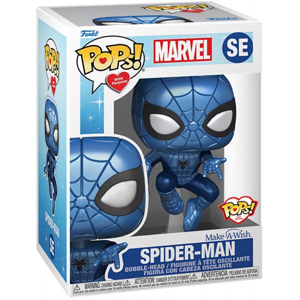 Funko Pop fabricado en vinilo con una altura aproximada de 10 cm. Presentado en 2021, Pops With Purpose une a algunos de los personajes más queridos del mundo, en una versión coleccionable, con causas filantrópicas. En esta versión pop metalizada de Make-a-Wish, si te llevas directamente a casa al superhéroe arácnido más querido del universo Marvel. Imprescindible para cualquier verdadero fanático de Marvel, agregue Spider-Man a su colección Funko hoy.